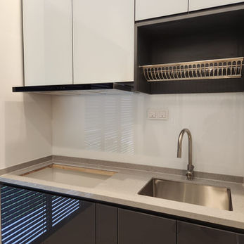This home exudes a harmonious blend of modern minimalism and functional luxury, creating a living environment that feels both inviting and meticulously crafted. The living spaces are adorned with clean lines and thoughtful detailing, with natural wood accents and striking marble backdrops serving as focal points. The sleek cabinetry and built-in shelving throughout enhance the streamlined aesthetic while offering ample storage solutions. In the kitchen, high-gloss finishes and neutral tones are combined with state-of-the-art appliances, maintaining a practical yet sophisticated design that flows seamlessly into adjoining utility spaces, where every detail is optimized for efficiency and style.